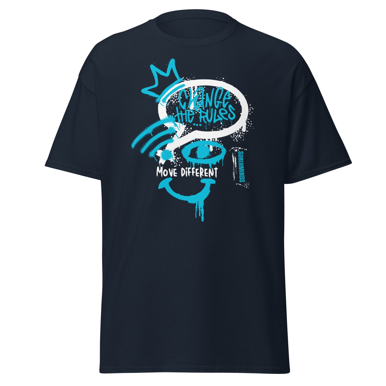 Break the mold. Rewrite the script. The Soberminds® “Change the Rules” Tee is designed for those who move different and refuse to blend in. Featuring graffiti-inspired lettering with the bold phrases “Change the Rules” and “Move Different”, paired with a striking eye and crown design, this shirt brings rebellious energy into everyday streetwear. ShirtThe 100% cotton unisex classic tee will help you land a more structured look. It sits nicely, maintains sharp lines around the edges, and goes perfectly with layered streetwear outfits. Plus, it’s extra trendy now!