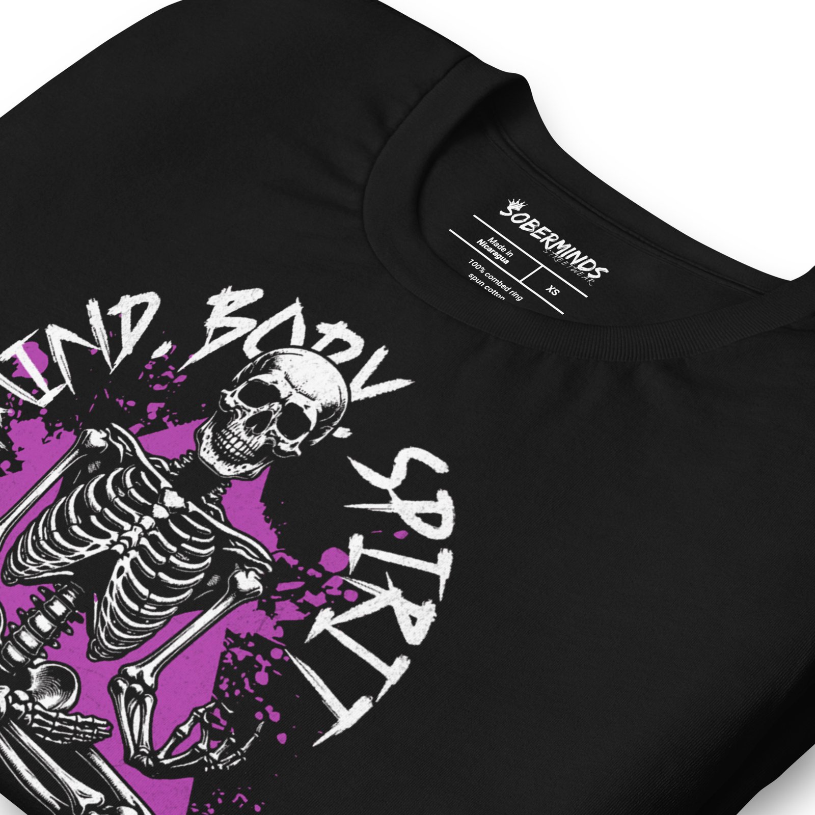The Soberminds “Mind • Body • Spirit” Skeleton Meditation Tee is a raw visual representation of what real transformation looks like beneath the surface. The seated skeleton, centered in a meditative pose, symbolizes stripping everything down to your core — removing ego, fear, distraction, addiction, and all the layers that once controlled your life.