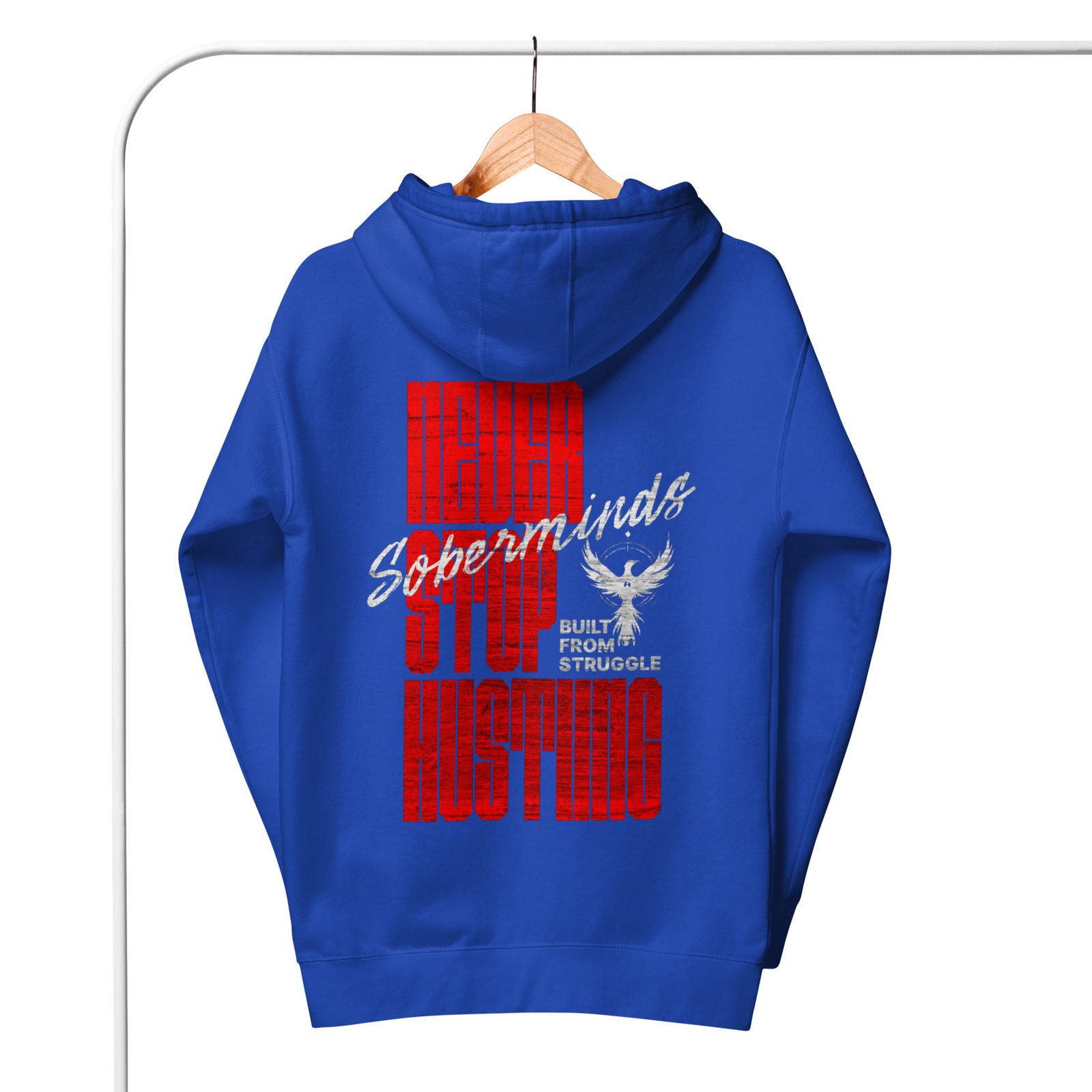 The Soberminds “Never Stop Hustling – Built From Struggle” Tee is designed for those who refuse to quit, refuse to break, and refuse to go back to who they used to be. This bold streetwear design blends raw ambition with the Soberminds identity — transformation, discipline, and overcoming every obstacle life puts in your path.