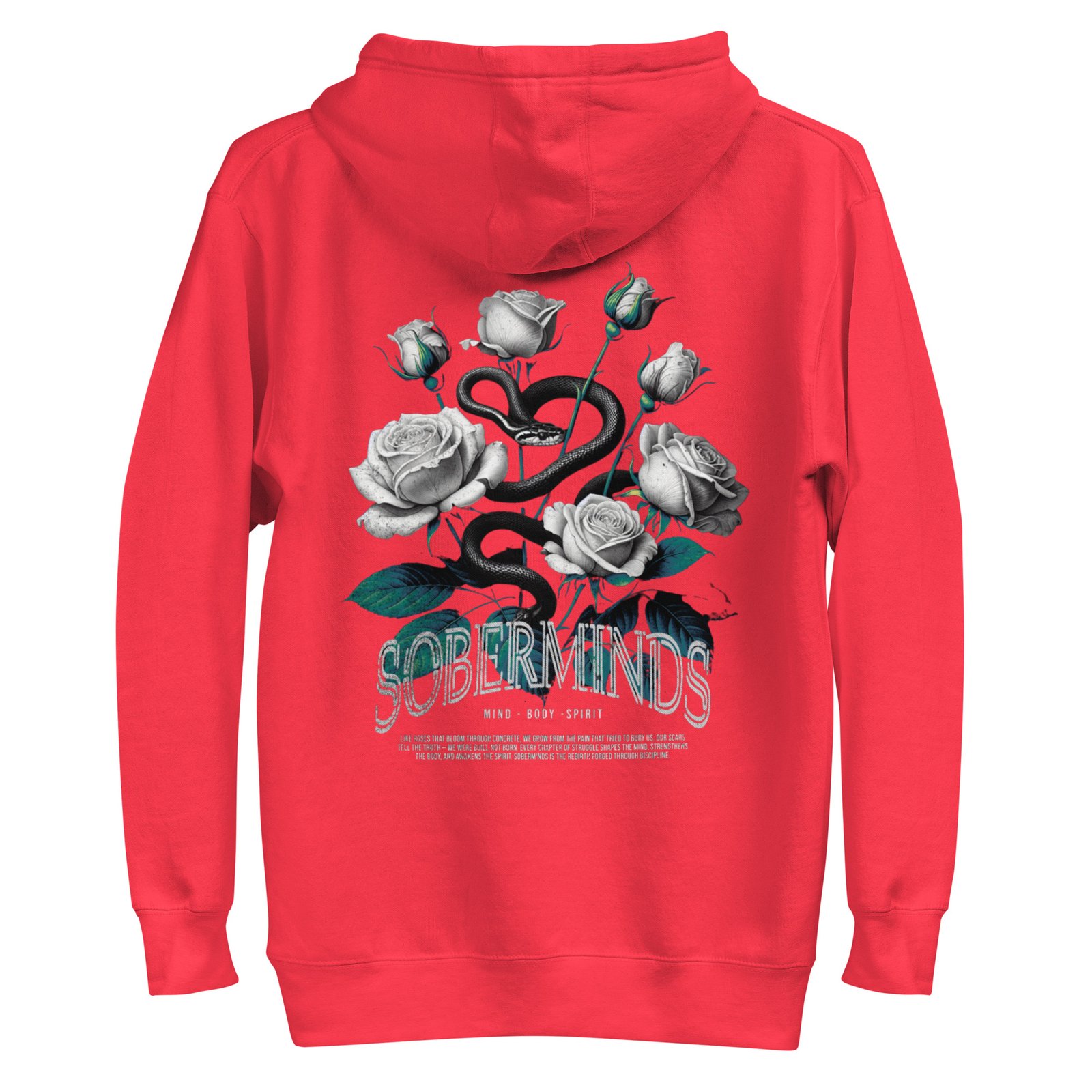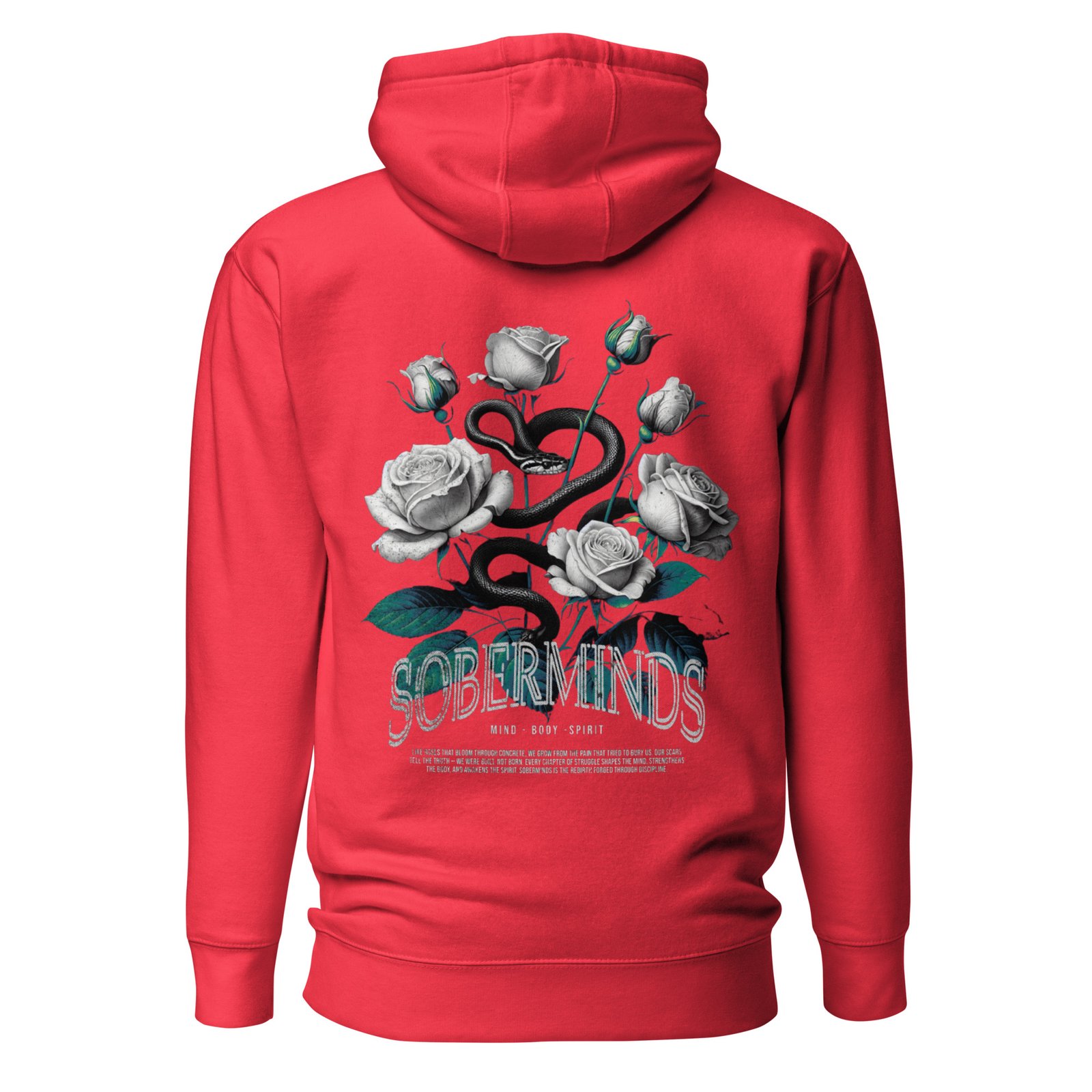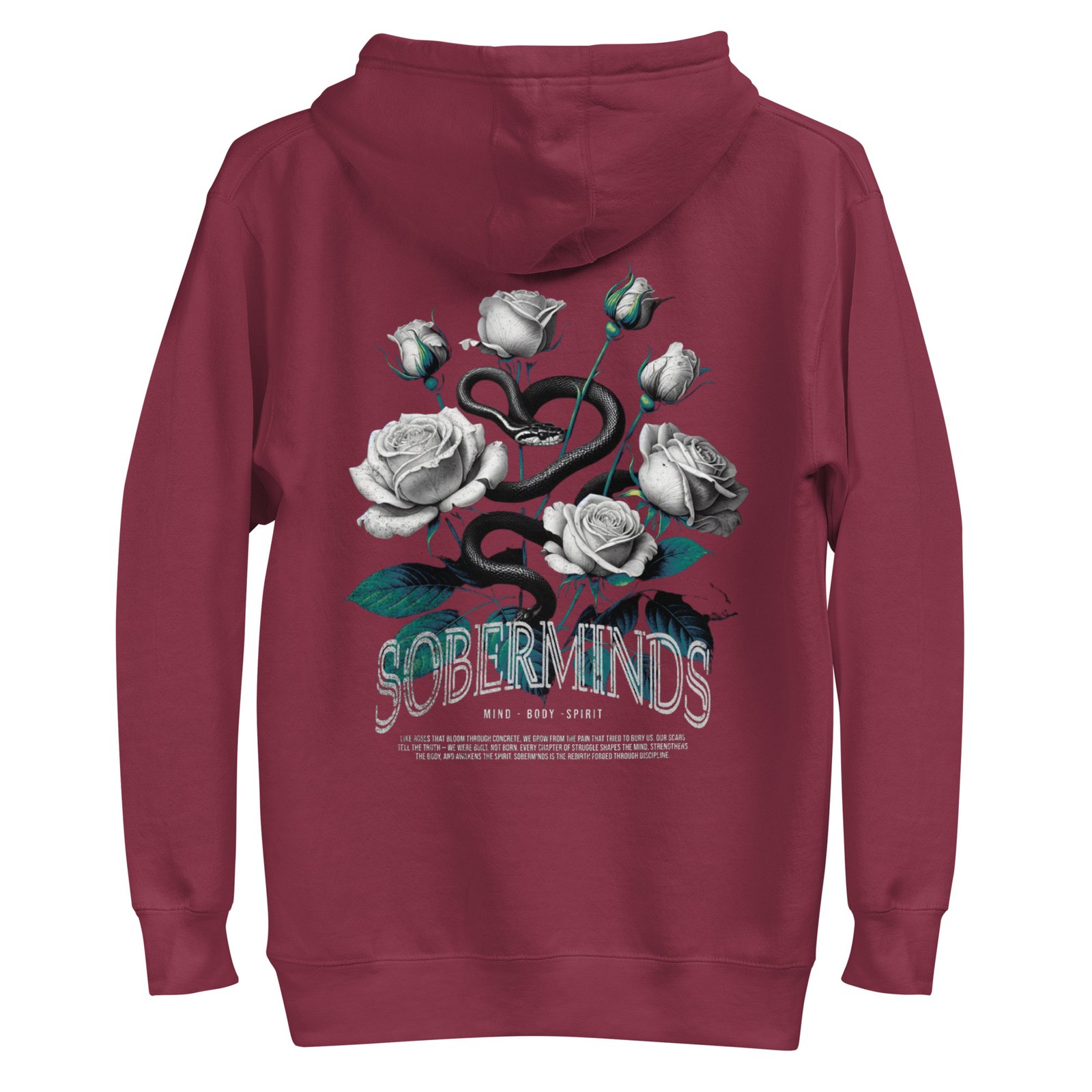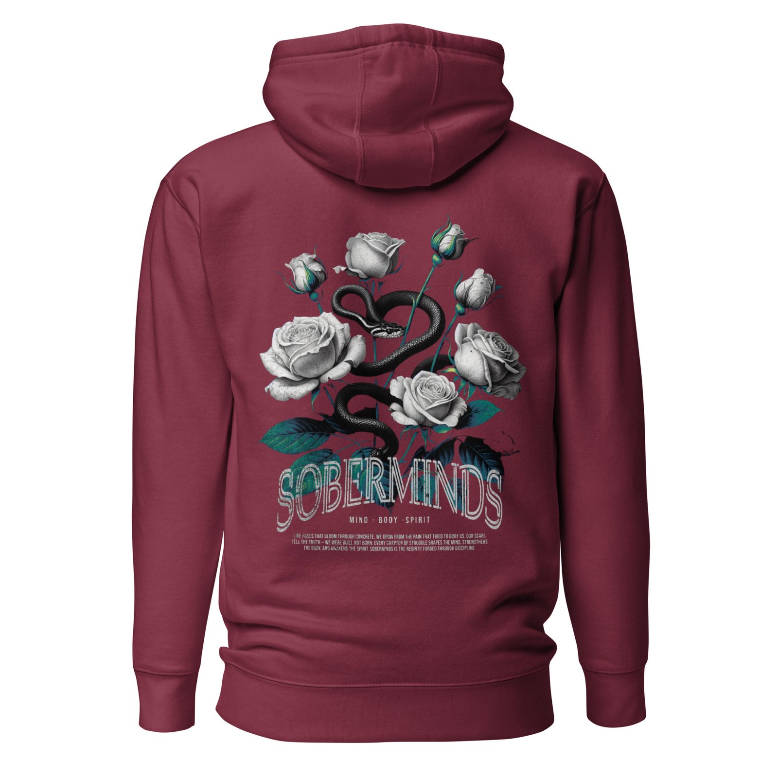 The Soberminds “Roses & Serpent – Mind • Body • Spirit” Tee blends powerful symbolism with the raw transformation that defines the Soberminds lifestyle. Featuring white roses, a coiled serpent, and deep teal accents, this design represents rebirth, discipline, and the inner awakening that happens when you shed your old identity and step into who you were meant to become.