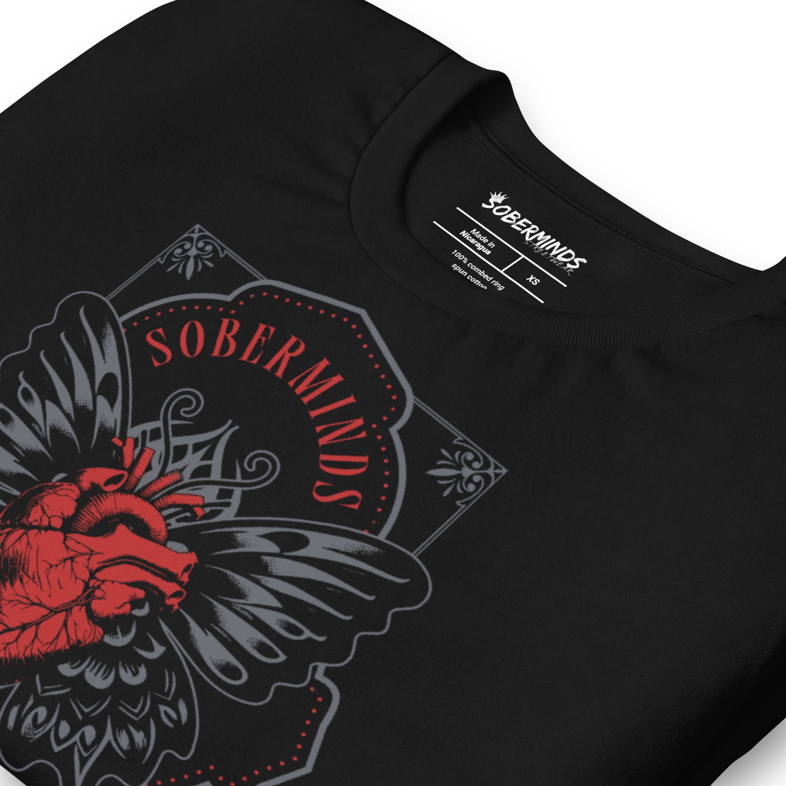 A powerful Soberminds tee featuring a winged anatomical heart and the quote: “Pain didn’t clip my wings — it carved them.” A symbol of healing, resilience, and rebirth.